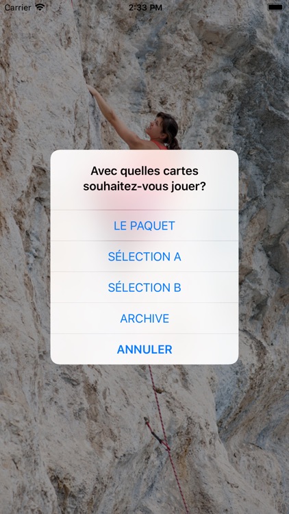 Un jeu de carte, avec un tirage au sort pour pimenter vos session d'escalade! Les cartes donnent du pouvoir ou des contraintes aux grimpeurs.