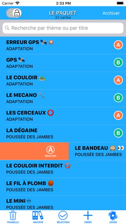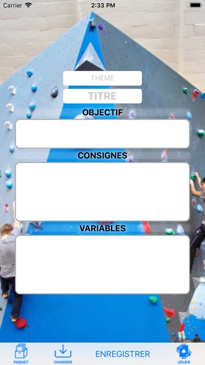 - Créer ou modifier des cartes (Titre, Thème, Objectif, Consignes et Variables)